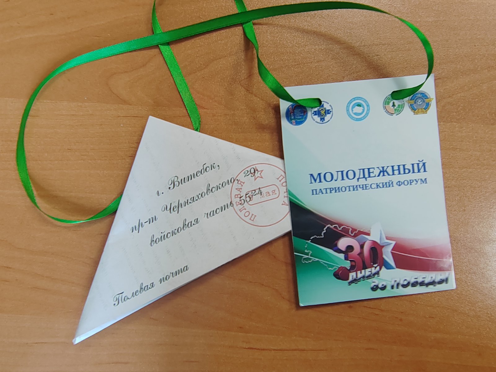 Ребята передали участникам форума письма-треугольники. В них ветераны оставили для молодежи напутствия, как следует беречь нашу Родину и охранять мир на многострадальной белорусской земле. Молодежный форум посвящен 81-й годовщине Великой Победы