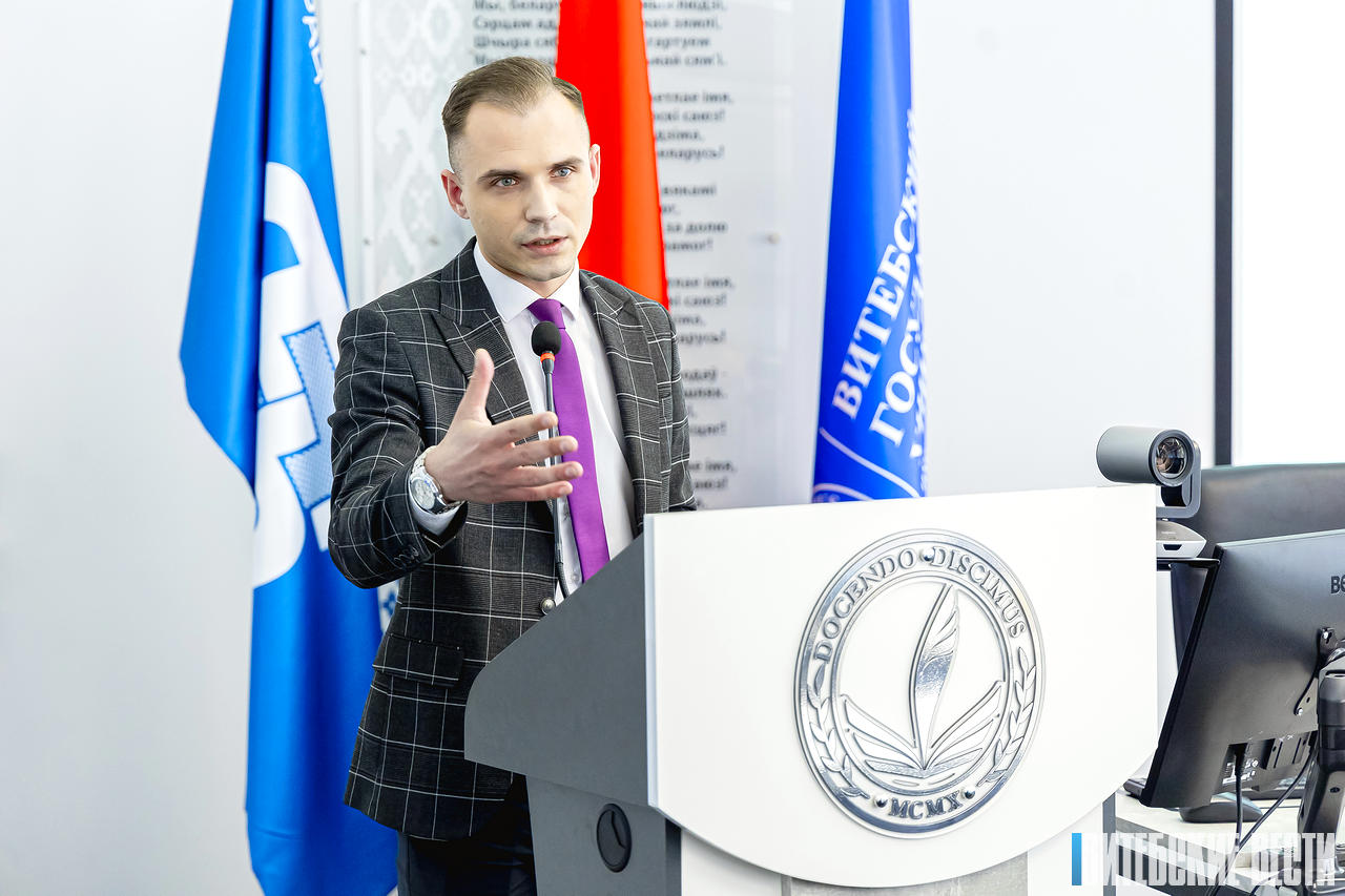 Гергаев Александр- начальник отдела медиакоммуникаций УО ВГУ им. П.П. Машерова c темой развития медиапространства университета на примере деятельности Медиацентра ВГУ имени П.М. Машерова