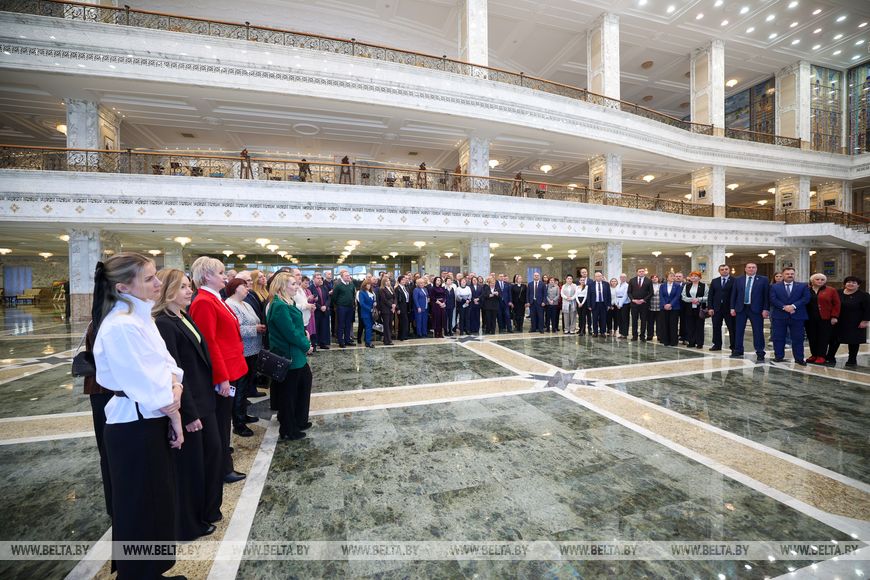 Посещение Дворца Независимости - это мотивация работать лучше и, что особенно актуально, качественнее. Государственные награды тем, кто наилучшим образом проявил себя в работе, Президент вручает тоже во Дворце Независимости. На этот счет даже есть отдельная примета: если встать за трибуну в Зале госнаград и загадать желание, то вскоре можно вернуться в этот зал и получить награду из рук Президента. Сбывается? Участники экскурсии заверили, что приложат максимум усилий, чтобы все сбылось.